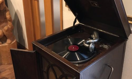 前に「レコードの音」というエッセイを書いた。そこでCDの音とレコードの音の違いについての感想を書いたのだが、あらためて言いたいのはその音の質感の違いについてだ。ステレオよりもモノラルが良い。昔の録音をステレオに変えたものや、雑音を取り除き、なめらかで聞きやすい音に変換した、等というものは良くない。私の言う音のリアリティというものはその音の存在感の持つ重さである。原音に忠実な・・・などという数値的な厳密さとは関係ない。西洋骨董を見るのは私の楽しみの一つだが、ある日、店の家具の中に蓄音機があるのを発見した。しかも英国グラモホンの1930年代のオリジナルである。前から欲しいと思っていたのだが、音を聞いてそのリアルな音に驚き購入した。蓄音機で聞く音は生々しく、まるで本当に人がいて演奏しているようだ。雑音は勿論あるが、そんなものはどうでもよい。時代が古い録音は微かな音であるが、それもまた遠くの部屋で実際に演奏している人をそっと聞くような醍醐味がある。耳ではなく、皮膚が音を受け入れるというような思いがする。